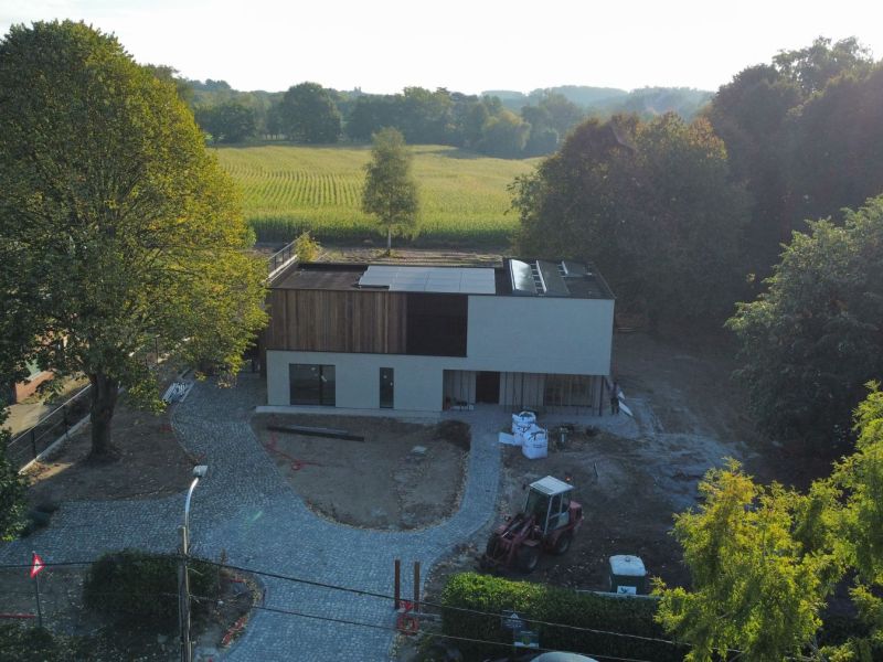 Duurzaamheid staat centraal. De woning wordt uitgerust met een lucht-water warmtepomp, vloerverwarming, zonnepanelen en een ventilatiesysteem. Deze maatregelen, samen met doorgedreven isolatie, resulteren in een uitzonderlijk laag E-peil van E17 – bijna energieneutraal! De royale leefkeuken, voorzien van high-end apparatuur, wordt het kloppend hart van het huis. Bovendien brengt de sfeervolle open haard warmte en gezelligheid in de keuken, zithoek en eetkamer.